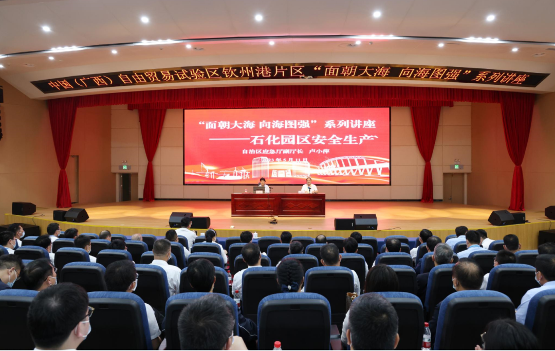 欽州港片區(qū)管委副主任劉祥,以及欽州港片區(qū)管委相關(guān)職能部門干部、各平臺企業(yè)管理層負責(zé)人、消防救援隊伍負責(zé)人、片區(qū)危化和工貿(mào)企業(yè)負責(zé)人共400多人參加講座。