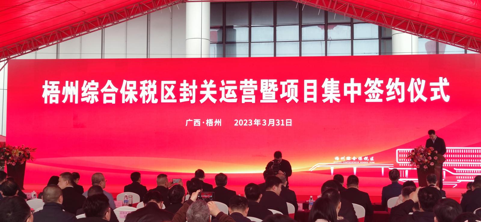 3月31日上午,梧州綜合保稅區(qū)封關(guān)運營暨項目集中簽約儀式在梧州市順利舉行